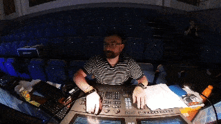 The bar-mounted front projector carried the main content screen project with a supplementary pair of projectors mounted on the balcony projected behind the screen.